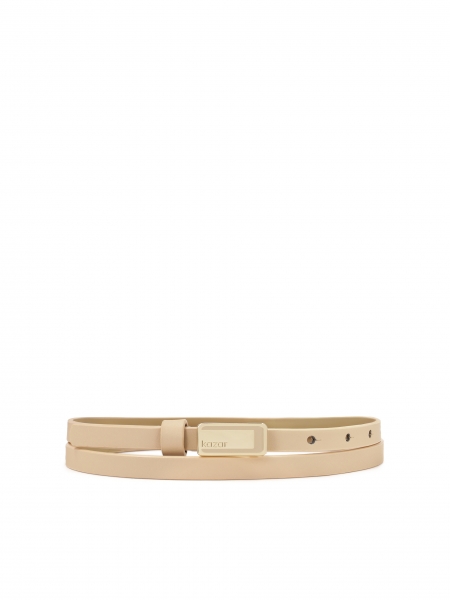 Skórzany beżowy portfel z paskami